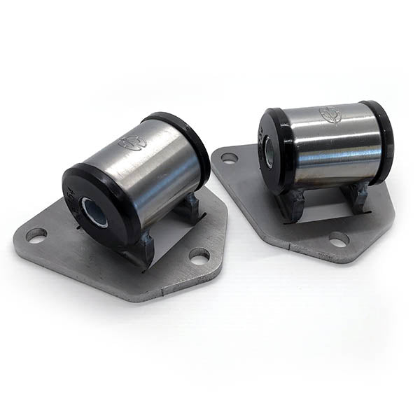 Universal engine motor mounts are perfect for engine conversions. They feature a thick .250" base plate, .188 wall DOM bushing sleeve, durable polyurethane bushings and zinc plated inner sleeve. These are a centered mounting position for Chevy small block or big block with 3 bolt mounting pattern. Includes block mounting hardware. Sold as a set.