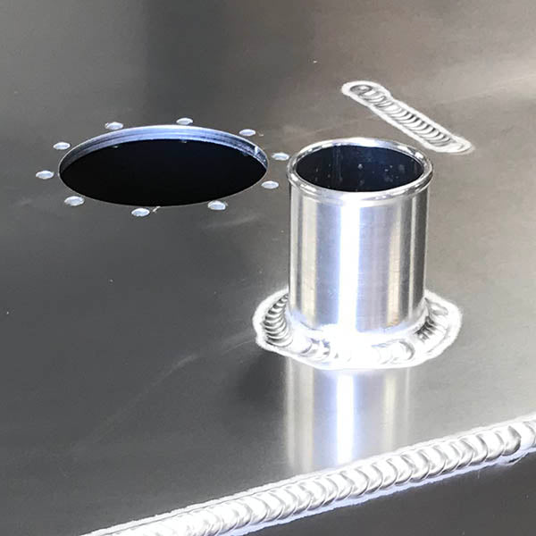 2” OD fuel filler neck is perfect for your custom aluminum fuel tank. CNC machined from 6000 series aluminum our filler neck features a substantial stepped welding zone and a sealing lip for leak free hose connection. Sold individually.